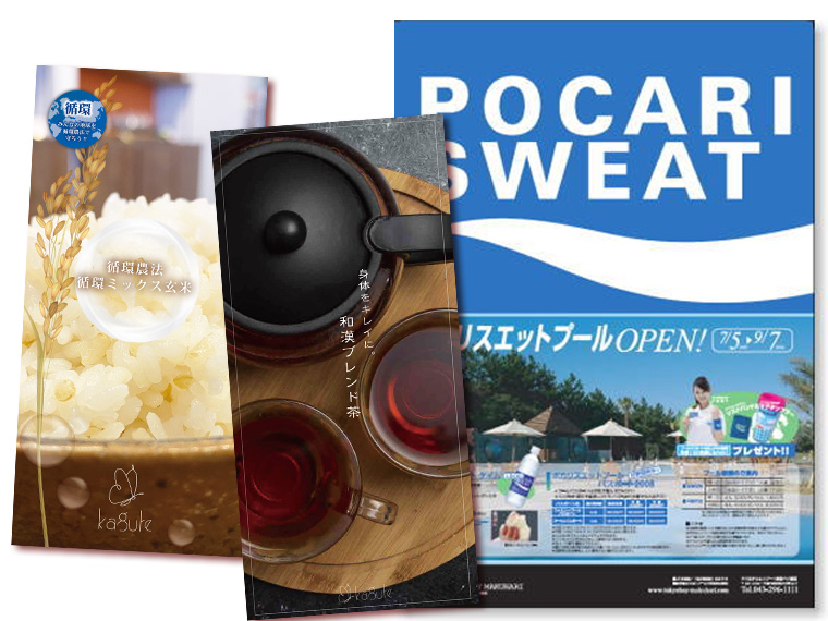 チラシやポスター、会社案内などの紙媒体も♪私達は色と文字があるものは、何でもデザインします!